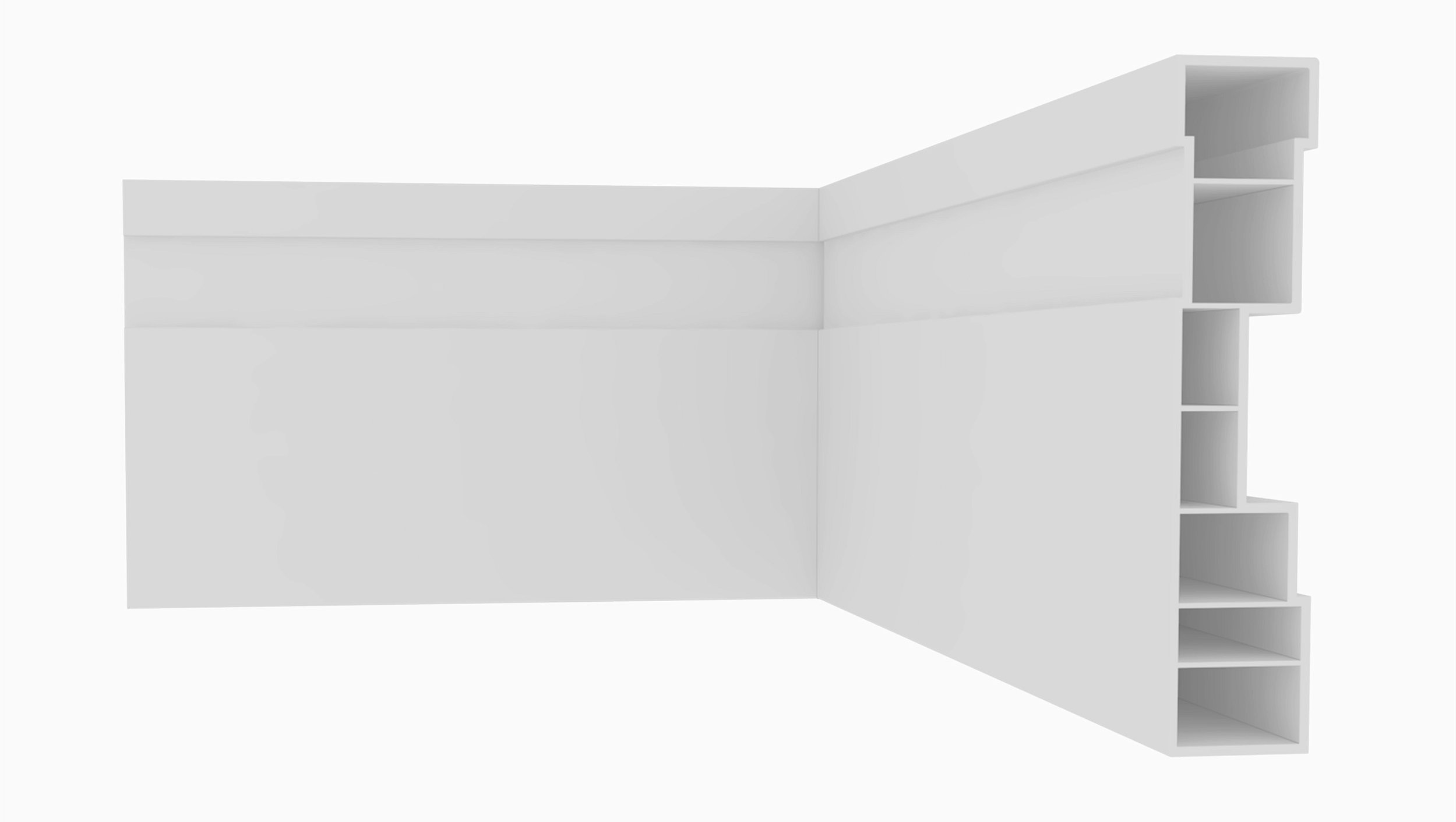 Novo Rodapé Nobre, totalmente remodelado e reinterpretado em uma nova superfície. A valorização das formas longilíneas aliadas a um novo design estrutural e a sua diversificação de tons, permite a inserção desse novo modelo em projetos exclusivos que priorizam o bem-estar e a poesia.